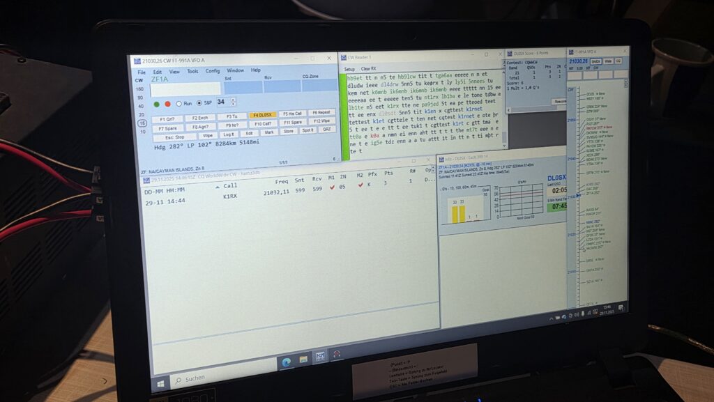 Als Ausbilder und Leiter des Workshops hatte sich Richard angeboten. Unser gemeinsames „Versuchskarnickel“ sollte der CQ WW DX CW Contest sein. Gleichzeitig galt es unseren OV-Rechner und auch das OV-Gerät für den Betrieb mit N1MM zu konfigurieren. Schon nach kurzer Zeit lief unser „Mini-Workshop“ auf vollen Touren 👌📡🥳 .